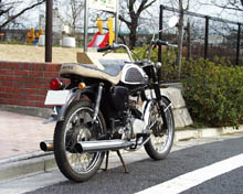 実用車として発売されましたが、高回転型の二気筒エンジンはレーサーのベースとしても人気があった。