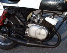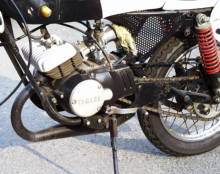タンクは「オオタニレーシング」製のFRPタンクです。 チャンバーは、キムラレーシング製です。 キャブレターは、ミクニのVM20Φを使用して、ファンネルを付けています。 |