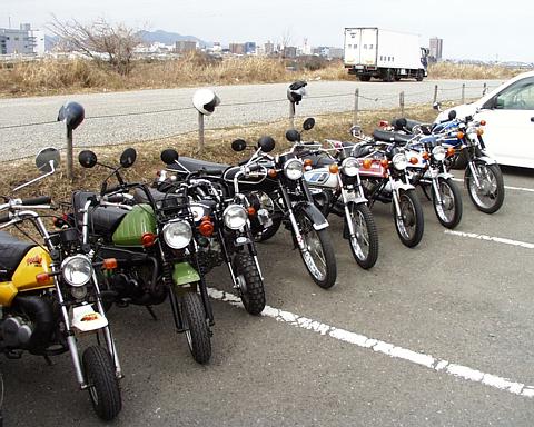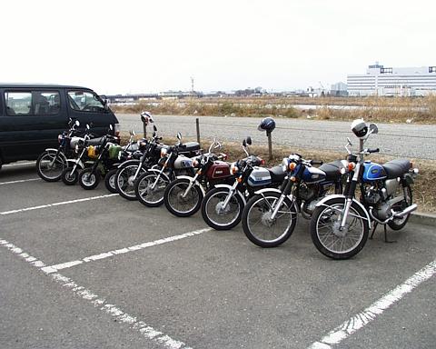 これだけ並ぶとさすがに壮観です! ちなみに手前から4台目が僕の「YB90」君です。 |