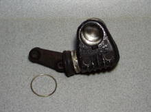 可動側のシューの側面には下の写真のようなピンが出ていて、キャリパー本体の溝にはまり回転