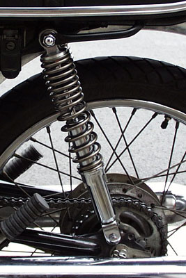 ただし伸び切った場合アクスルシャフトに当たるのでマフラーをフレームに固定している部分にワッシャーを3枚くらい入れた方が良いでしょう。(と言うより入れる必要があります)