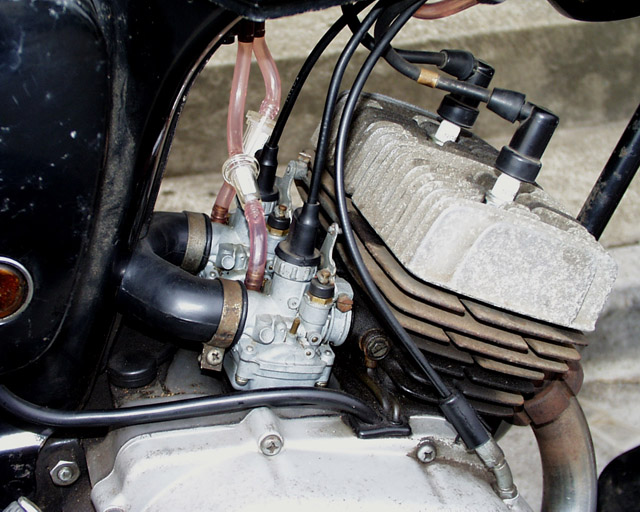 きれいなキャブでしょ、外観は全然レストアしないでエンジンや走行系だけをレストアして走ってたんですよ。 |