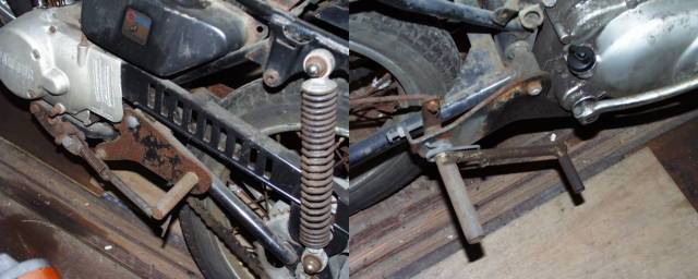 ブレーキ側のステップです。 ブレークロッドの位置がめちゃくちゃな場所なので、サスが沈んだら ペダルも動きます。 当時はこれでも良かったのかなあ・・・? |