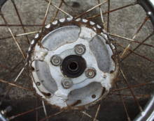 ナント驚いた事に、スプロケットが加工されています 歯数を変更する為に溶接で継いであります 中心は出てるんだろうか? 未確認ですが・・・どーでもいいや どうせ使わないから 理由は先に書いた通りです。 ちなみに40丁になってました |