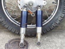 リヤサスなんですが 見た事の無いタイプです 色は紺メタで、プリロードの調整機能が付いてるし 誰か知りませんか? |