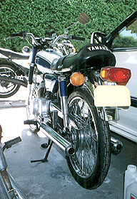 1971年式の「HX90」です。 外観から見ると初期に出荷されたものでしょう こまかい話ですが、シートのタンデムベルトの取り付け部が途中からシートに入っているのが見えますね。 さすがはヤマハの塗装です、色が褪せていません。 きれいなキャンディーブルーです。 (細かいことを言ってスイマセン) |