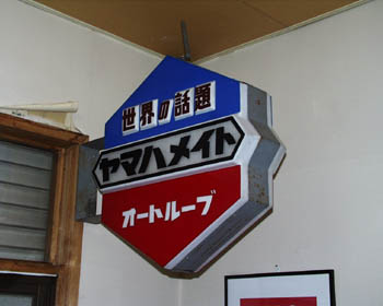 左の写真がヤマハ「U−7」です。 年式はたぶん1966年くらいでしょう、何と言っても「オートルーブ」になった頃のものです。 ウインカーもヘッドライト周りもホンダカブ「C−100」に似ていますね、テールランプもカワイイですよ。(見えないけど) ちなみに、右のカンバンは車両と同じ年代のメイトのカンバンです。